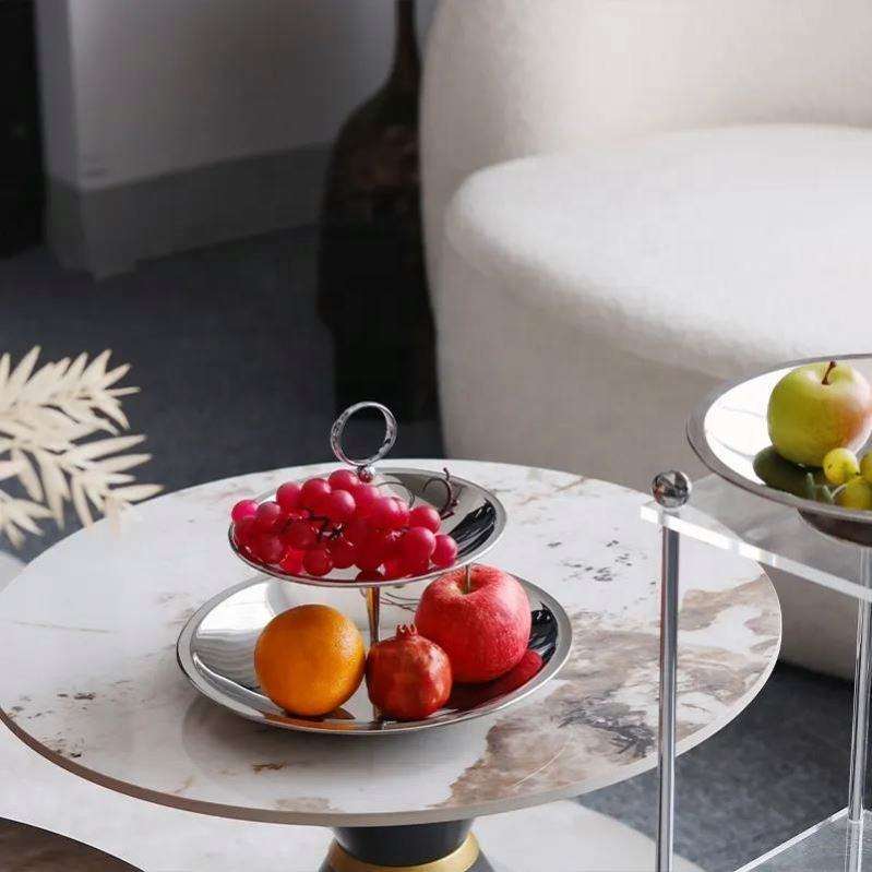 Bandeja de Servicio de Metal de 2 Niveles para Frutas, Postres, Aperitivos, Decoración del Hogar, Regalo, Exhibición para Hoteles y Restaurantes, Tamaños Grandes