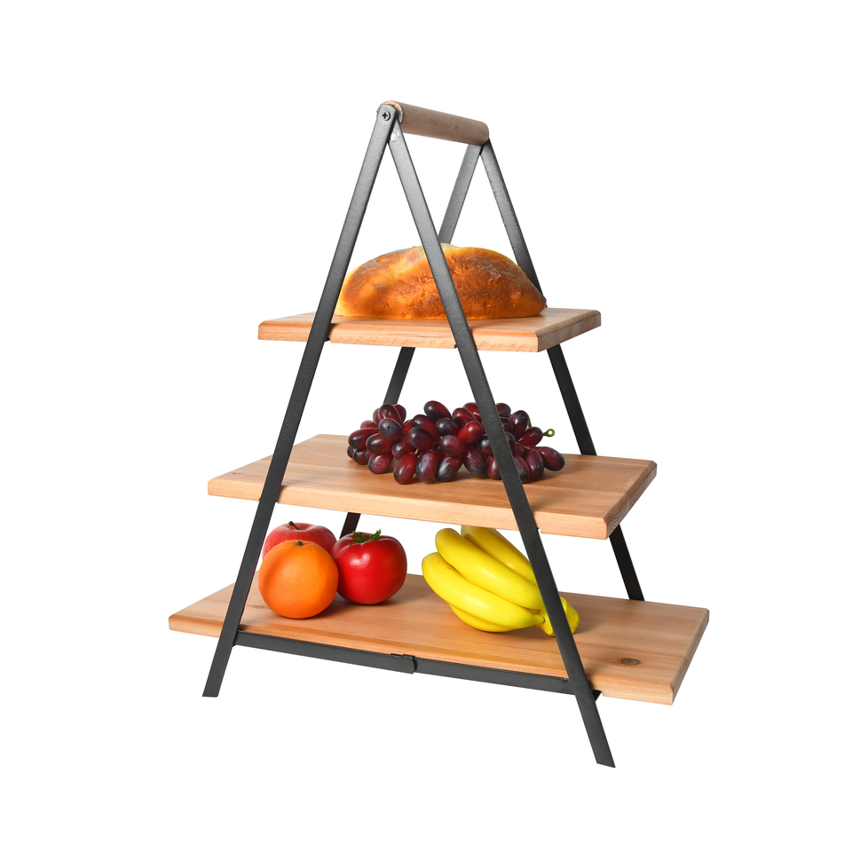 Nombre:12 pulgadas pastel y postre soporte Torched madera y metal negro Scrollwork
