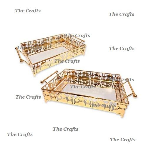 Juego de bandeja de Ramadán de color dorado de metal y vidrio de dos bandejas islámicas de forma rectangular para uso doméstico de vajilla