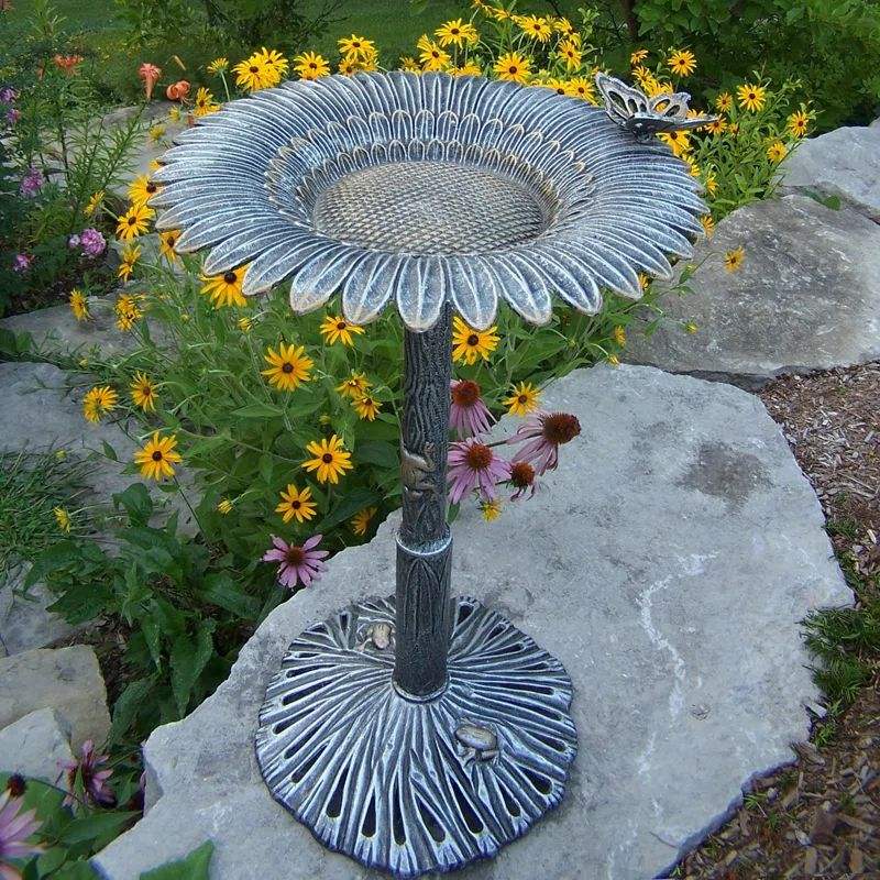 Bebedero para pájaros de metal, elemento de jardín resistente a la intemperie diseñado para resistir condiciones adversas mientras apoya las necesidades de hidratación de la vida silvestre.