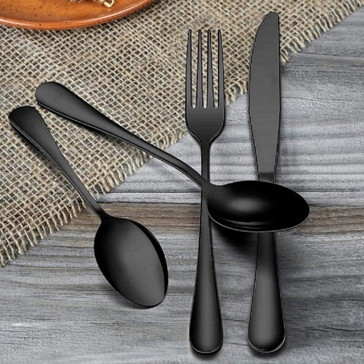 Juego de cubiertos de metal negro, juego de vajilla, cuchillo de boda, tenedor, cuchara, servicio de cubiertos para cuchara de acero con espejo de 5 piezas