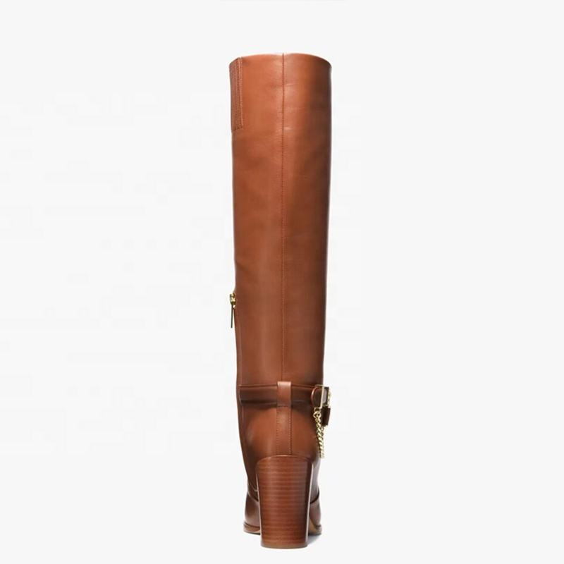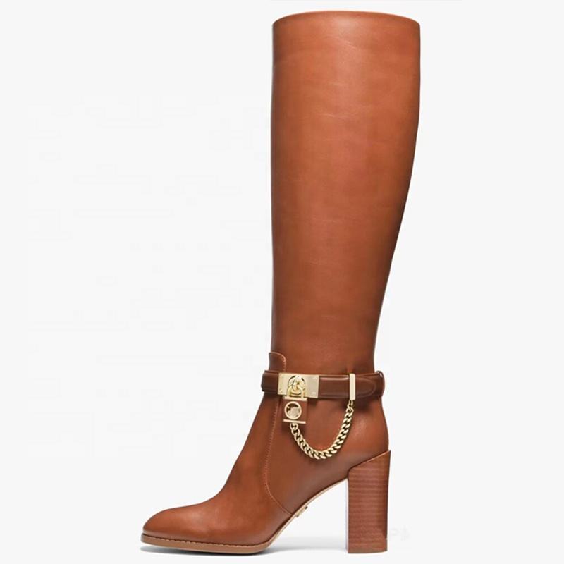 Botines Largos con Tacón Grueso y Cadena Metálica, Punta Redonda, Cierre Trasero, Estilo Western para Mujer, Botas Altas hasta la Rodilla