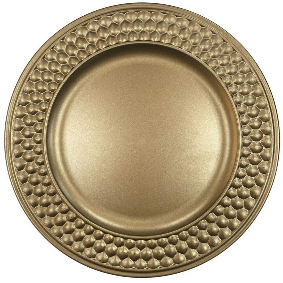 Plato de Presentación Metálico con Acabado Dorado Mate de 13 Pulgadas, Redondo, con Borde Hexagonal Texturizado, para Decoración de Mesa, 100 Piezas, Ecológico
