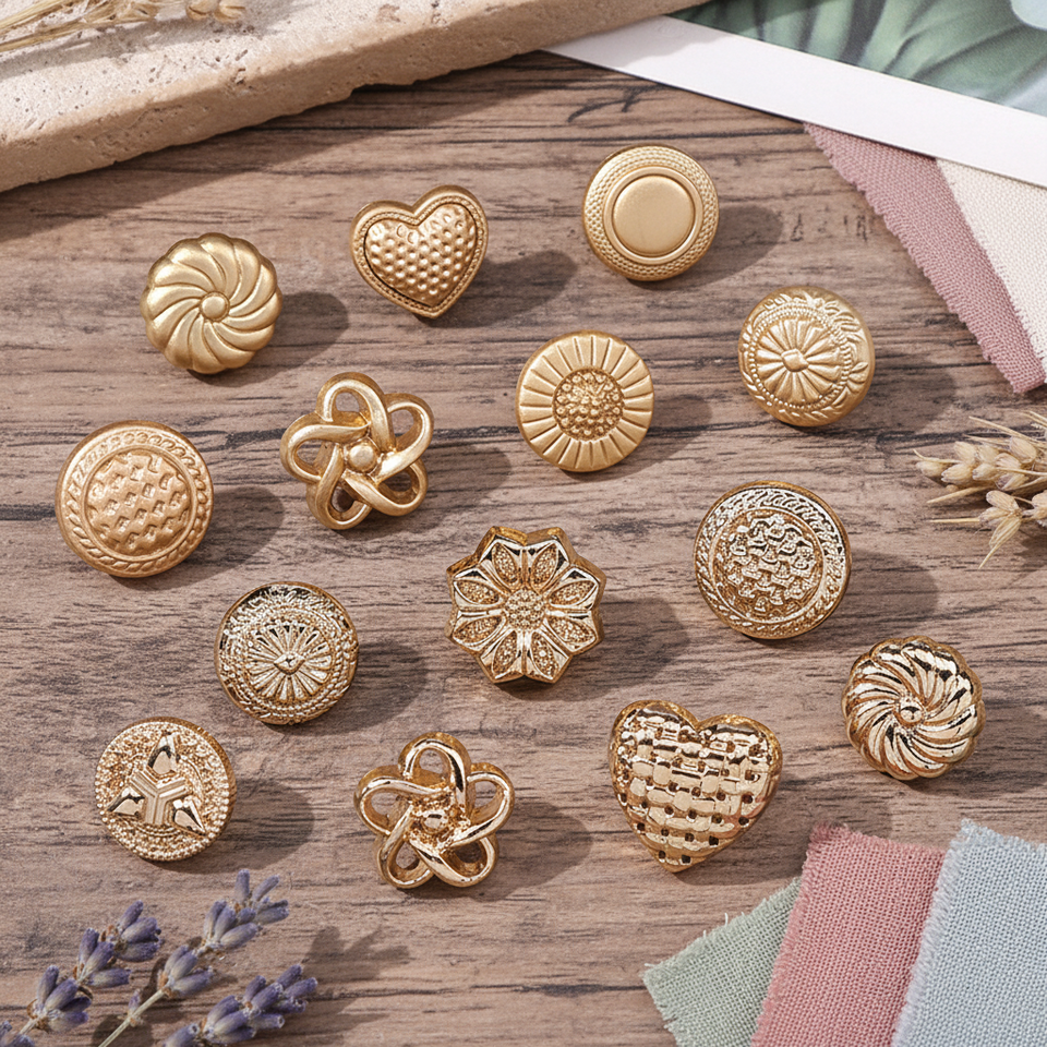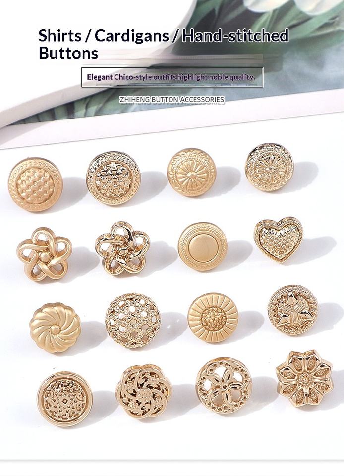Botones de Camisa Simples de Alta Gama que Conservan el Color del Metal para Ropa de Niños (Formas de Corazón y Flor) Origen China