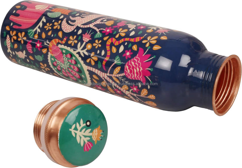Botella de cobre metálico para beber Animales florales impresos 35 OZ-Beneficios para la salud de Ayurveda