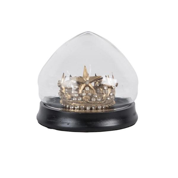 Patrón de cristal de corona de Metal con cúpula de cristal Cloche en Base de madera para Decoración de mesa decoración de vacaciones de fiesta de boda