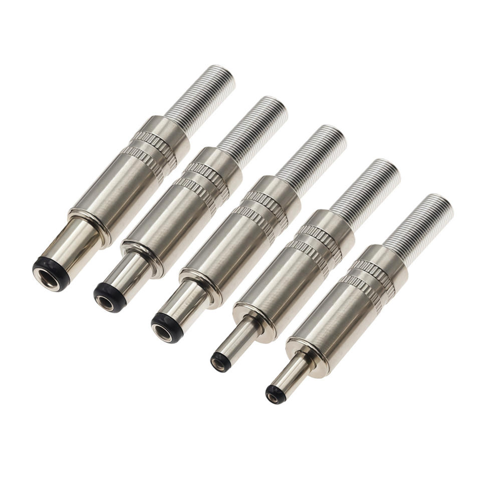 Conector Macho Metálico para Alimentación CC 5.5x2.1mm 2.5mm Soldable de Acero Inoxidable 12V Sin Conexión a Tierra