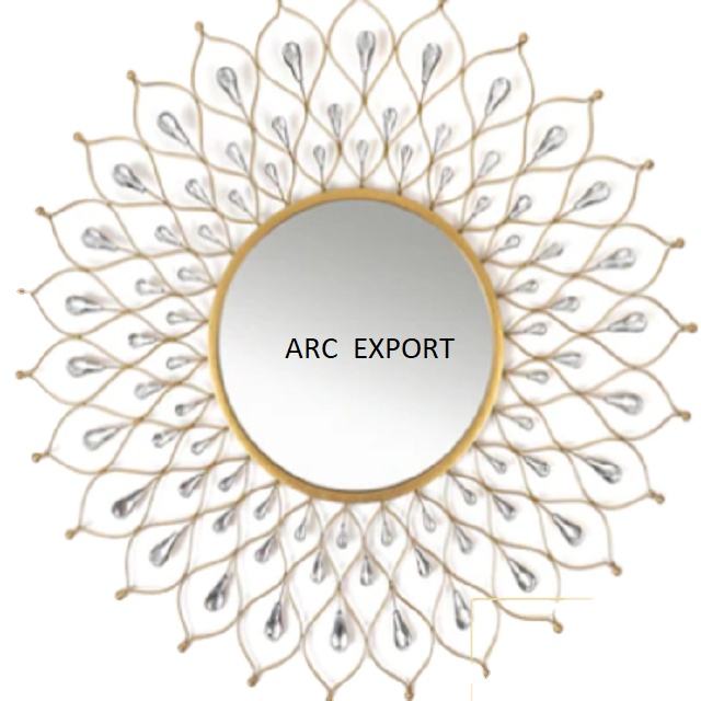 Espejo de Pared con Diseño de Metal para Decoración del Hogar, Espejo Artístico de Pared Antiguo con Diseño de Flor Solar de Lujo para Uso en Restaurante