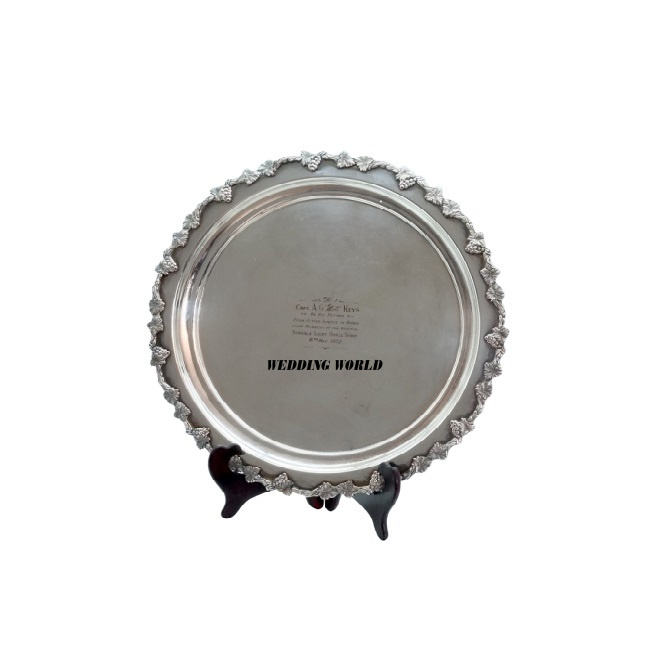 Bandeja de chocolate decorativa de metal, forma redonda, plato de chocolate con acabado plateado, superventas, plato de chocolate de lujo