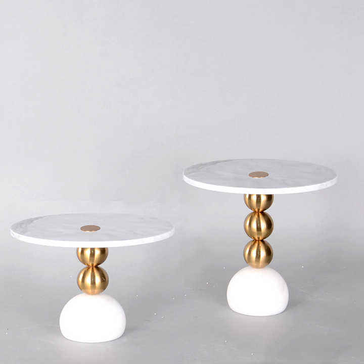 Soporte de pastel de oro de diseño elegante decorativo de metal con base de mármol de lujo al por mayor decoración de eventos de boda proveedor de precio barato