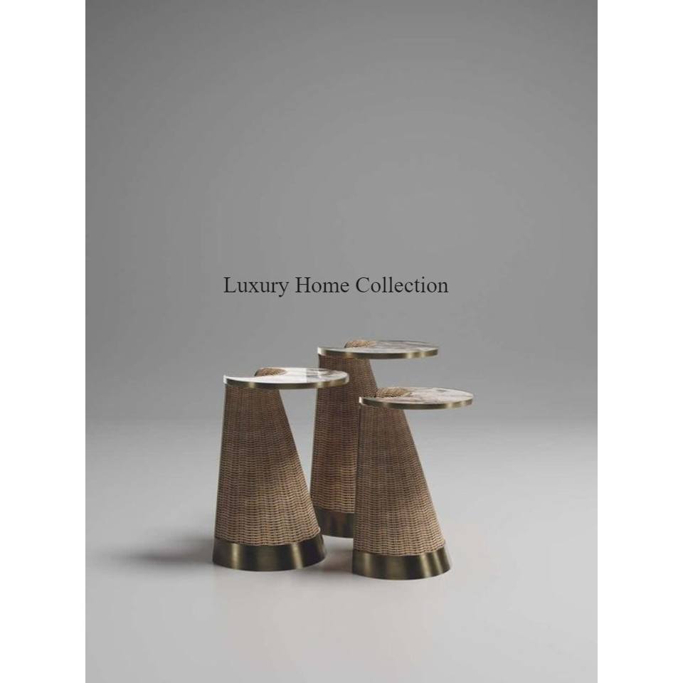 Mesa nido decorativa de metal y mesa central con marco hecho de hierro de color dorado y suministros hechos a mano de mármol de forma redonda