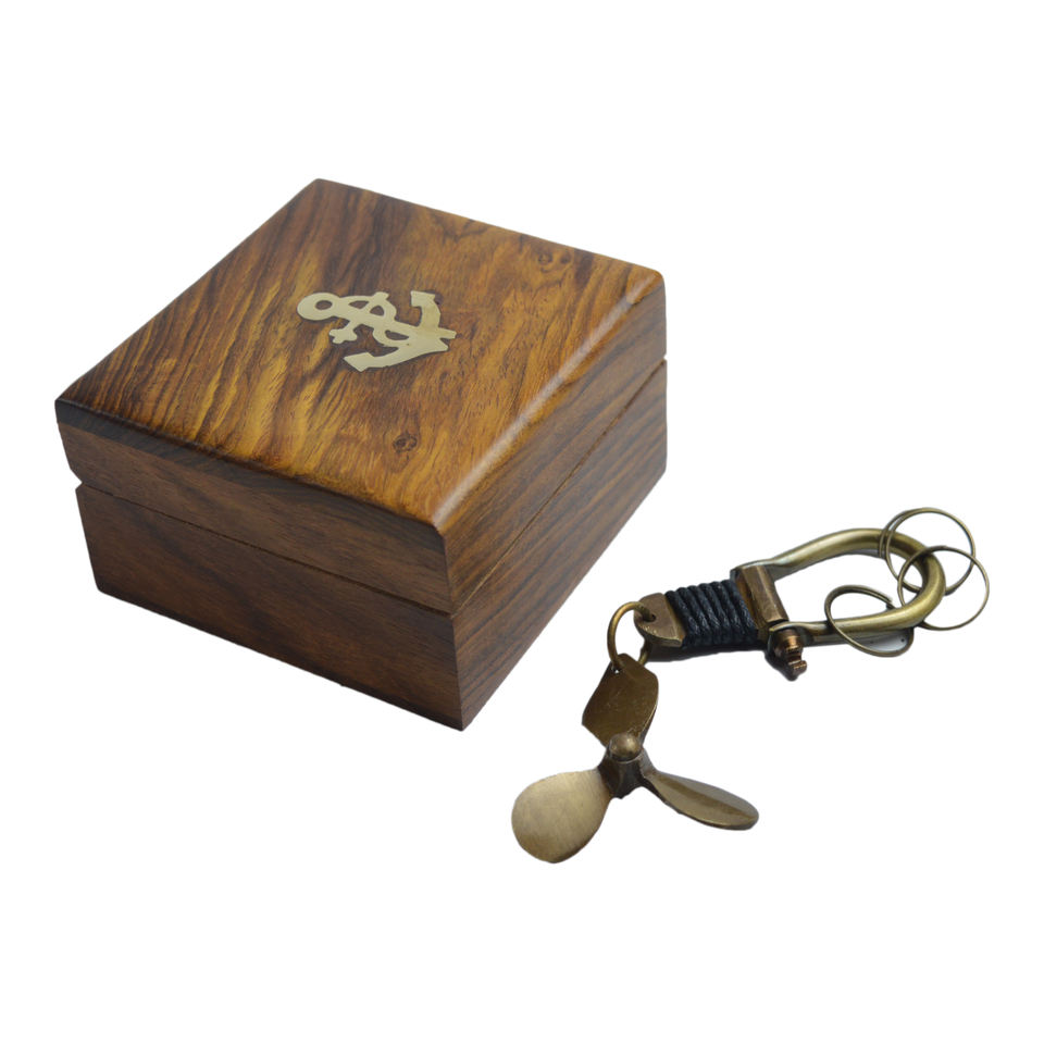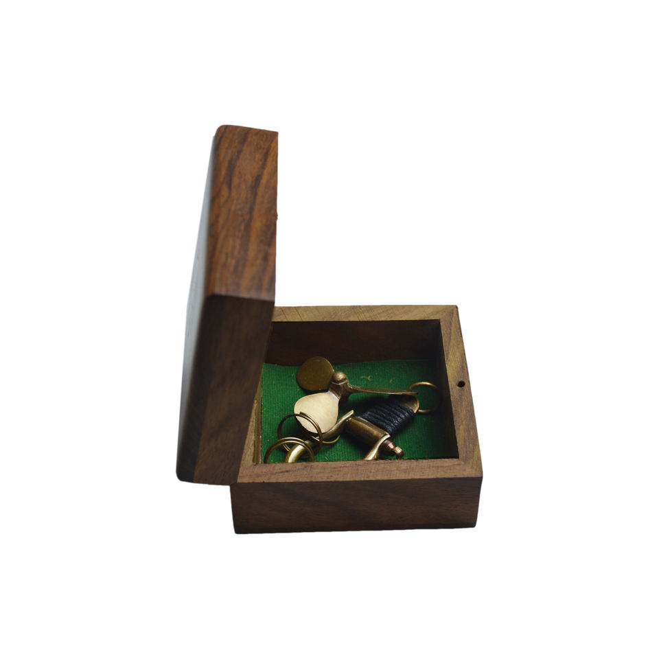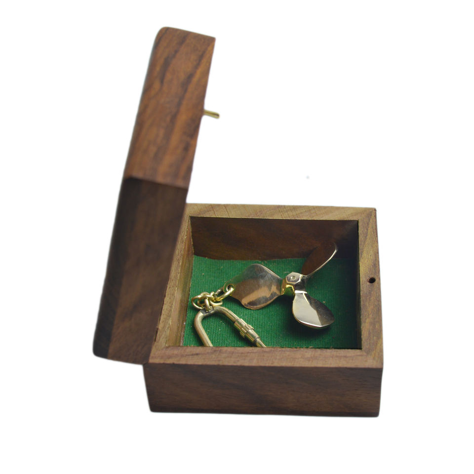 Llavero de Diseño Metálico en Latón Sólido con Caja de Madera, Acabado Brillante, Decorativo