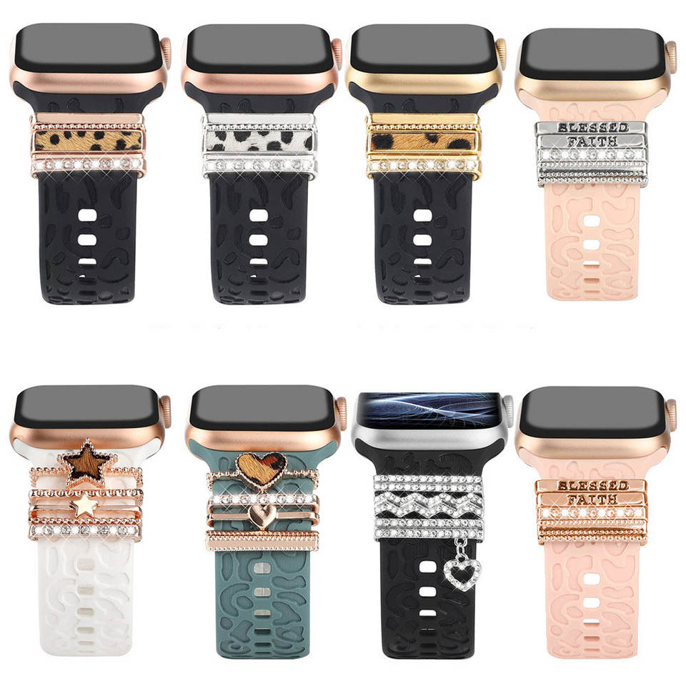 Anillo de Metal con diamantes decorativos para Apple Watch, pulsera de leopardo, dijes para Series 7, 6, 38, 40, 41, 42, 44, 45 Mm, correa de silicona