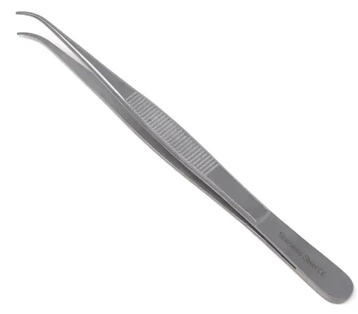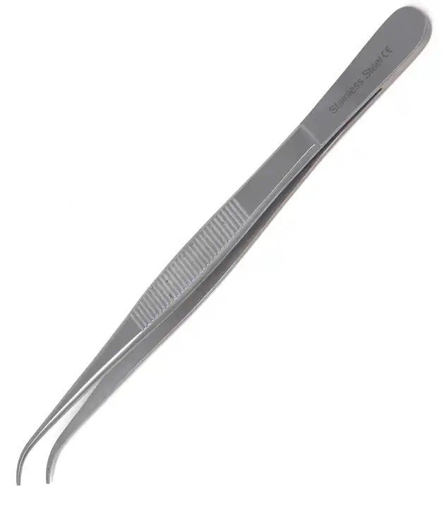 Pinzas de disección de metal Acero inoxidable Micro punta fina puntas dentadas Pinzas curvas de 6 "Pinzas de pulgar personalizadas al por mayor