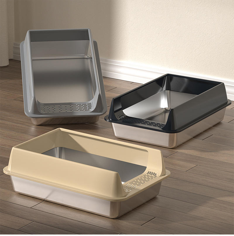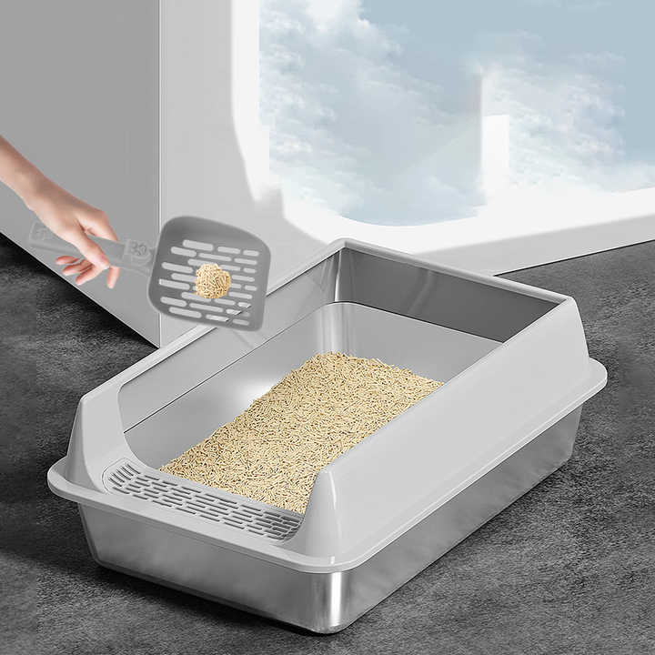 Arenero para Gatos de Acero Inoxidable de Limpieza Fácil, de Lados Altos, Semicerrado, Extra Grande, Antisalpicaduras, con Tapa, Reforzado