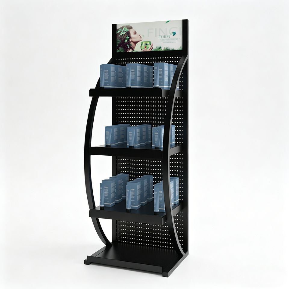 Exhibidor de Productos para el Cuidado de la Piel de Metal con Estantes y Panel Perforado, Unidad de Estantería Ajustable para Cosméticos para Exhibidores de Tiendas