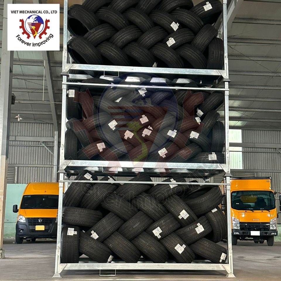 Estante Metálico Plegable para Almacenamiento de Neumáticos para Almacenes e Instalaciones Automotrices que Permite un Manejo Organizado de los Neumáticos