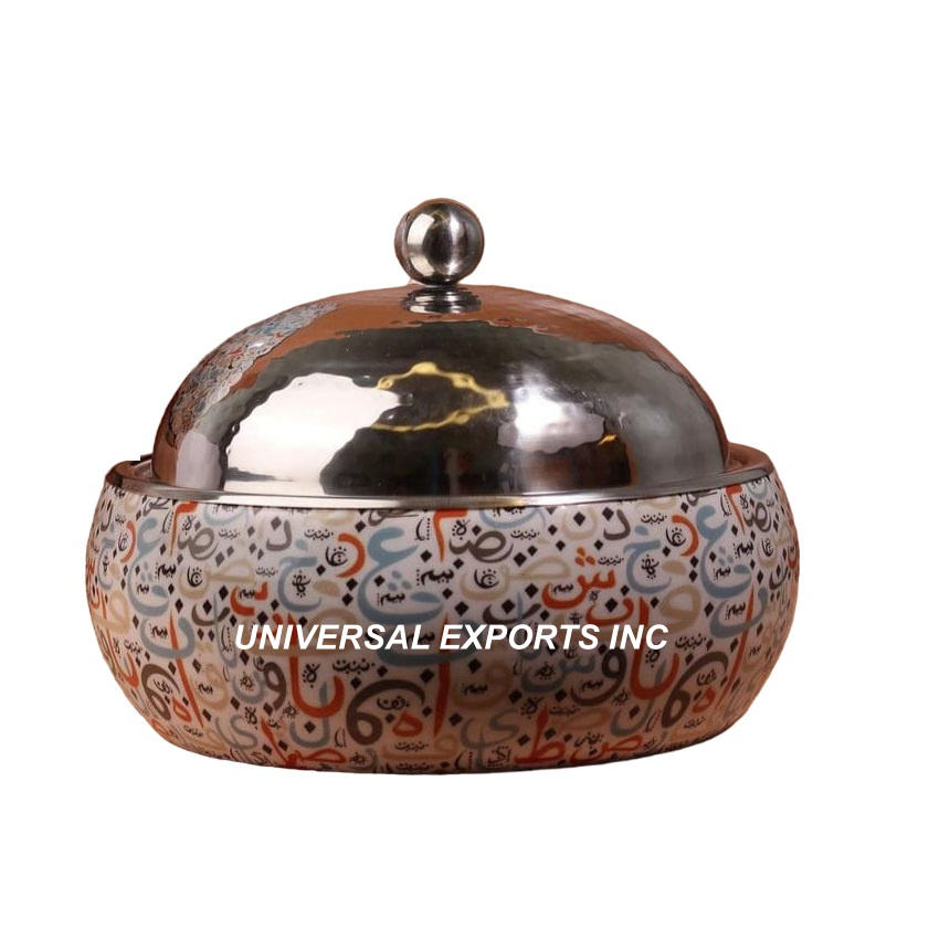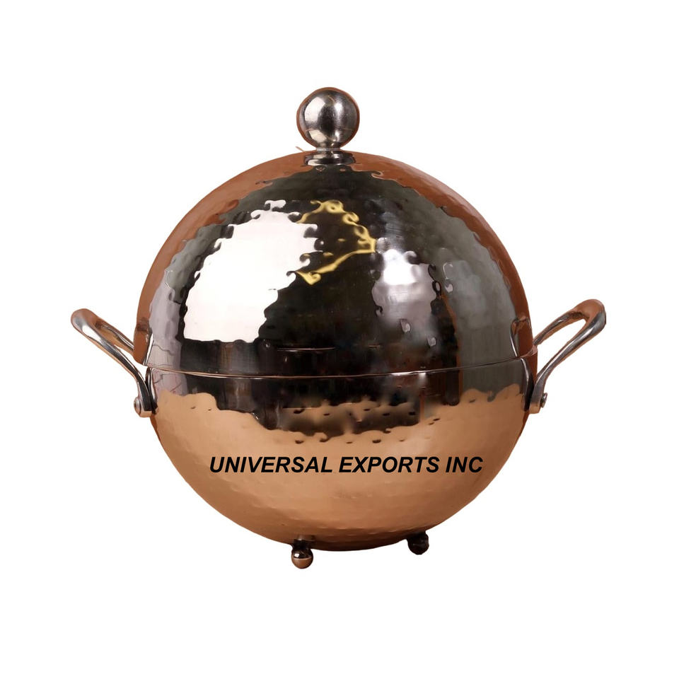Diseño personalizado hecho a mano de lujo cazuela forma redonda nuevo Metal Hotpot calentador de alimentos con estilo clásico