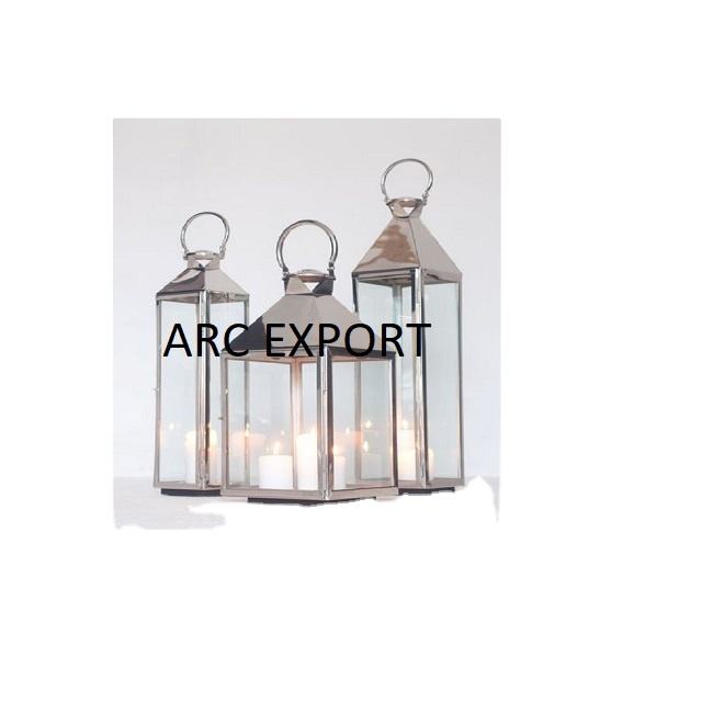 Linternas de decoración de Color plateado con marco de Metal, linternas modernas de diferentes tamaños de Metal y vidrio para accesorios de decoración de jardín y hogar