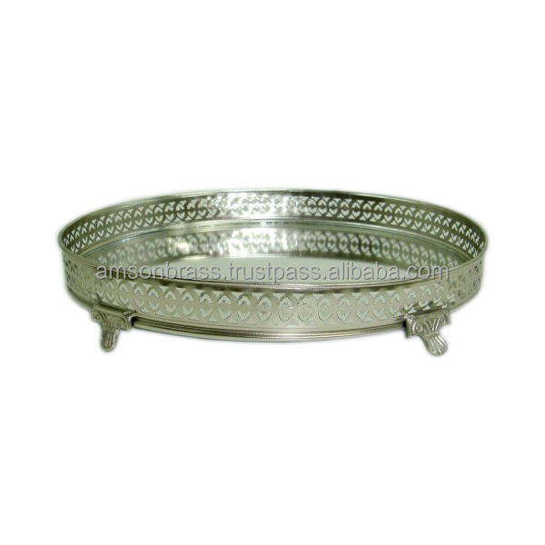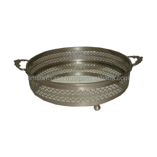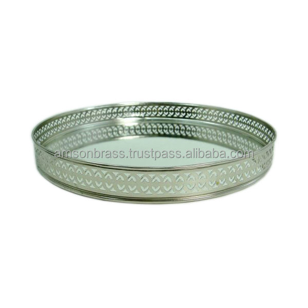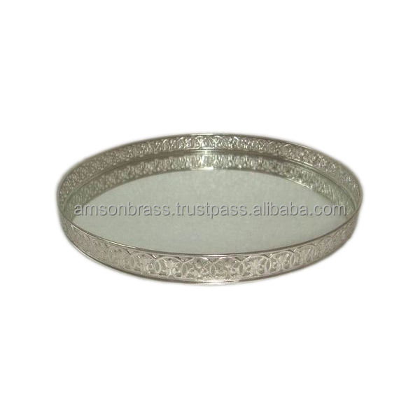 Bandeja de Metal de alta calidad para el hogar, Hotel, bandeja decorativa para servir, decoración, bandeja de espejo de vidrio de Metal con asa