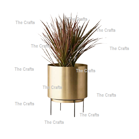 Maceta de Metal de Color dorado con soporte de hierro, maceta de forma redonda de calidad Superior para uso en decoración de jardín