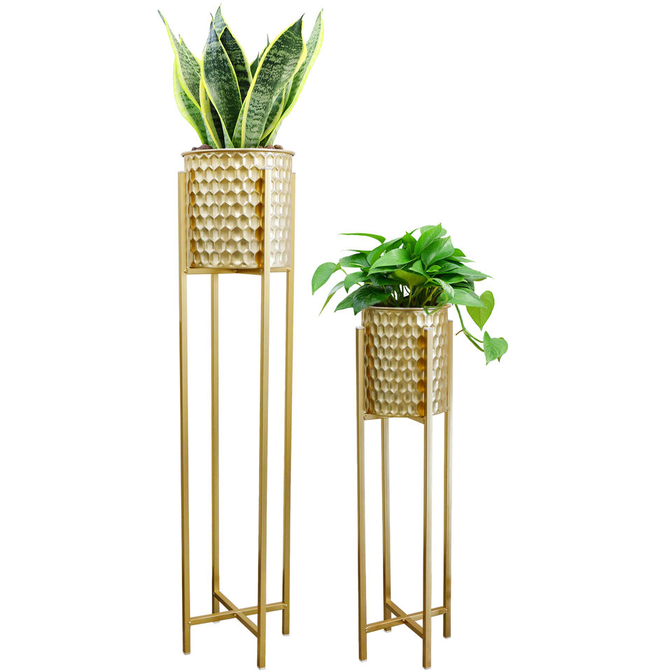 Soporte de Metal dorado para flores, artesanía a mano, maceta dorada de Metal, arte Interior, fiesta de boda, decoración de pie