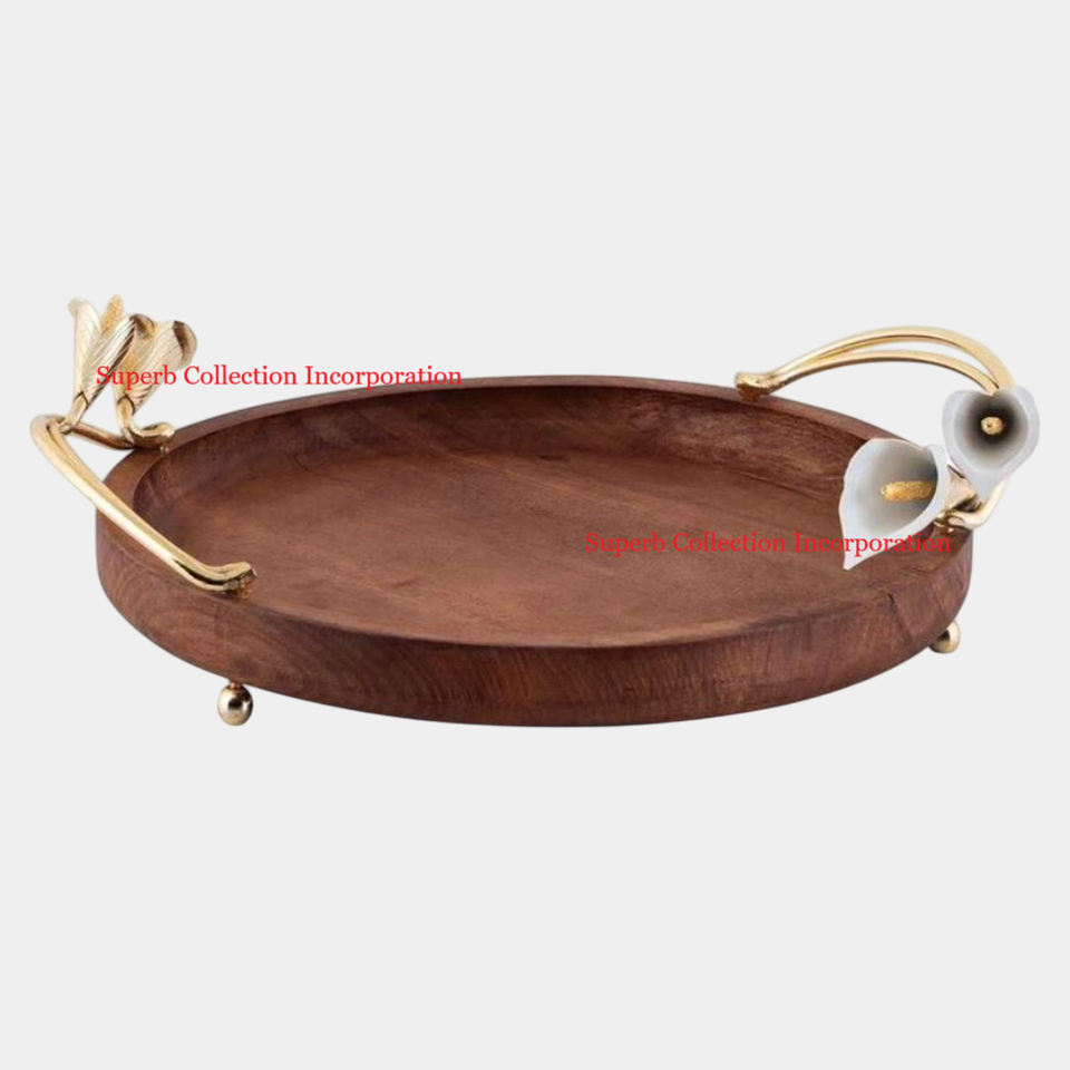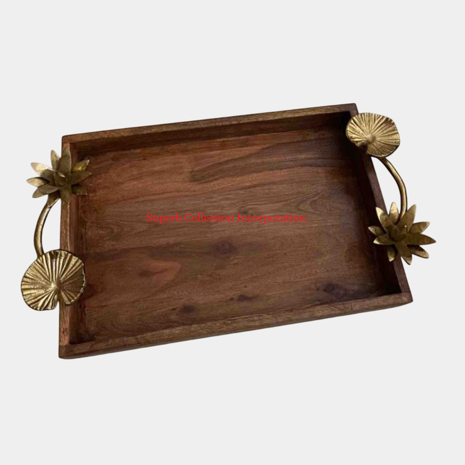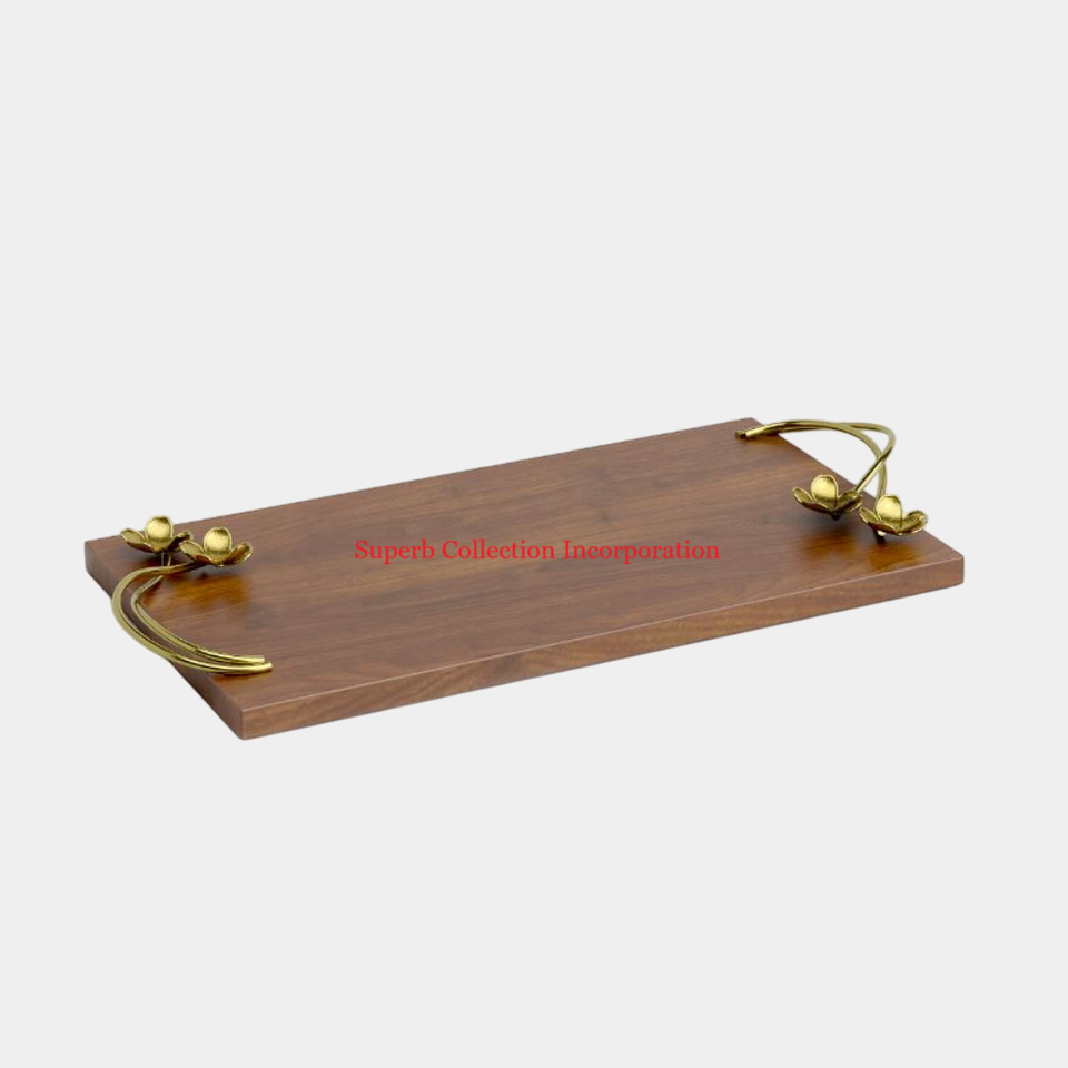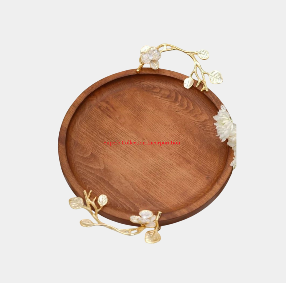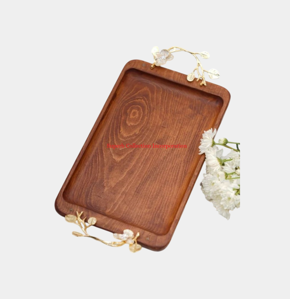 Mango de metal para té, café, aperitivos, bandeja para servir, última bandeja de servicio hecha a mano de madera con plato, cocina y mesa de comedor