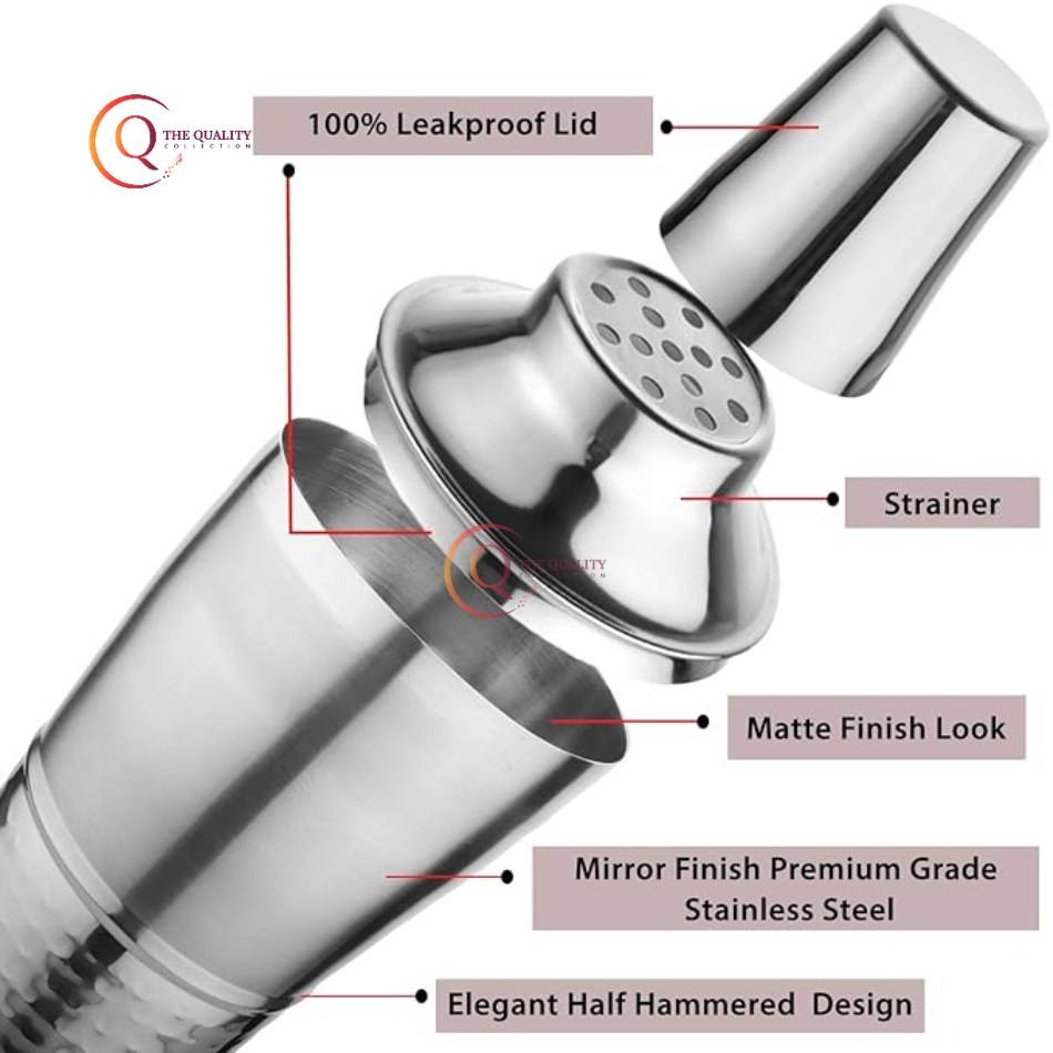 Coctelera hecha a mano de Metal para Bar y Hotel, coctelera mezcladora, Color plateado, pulido brillante, Material de acero inoxidable con martillado