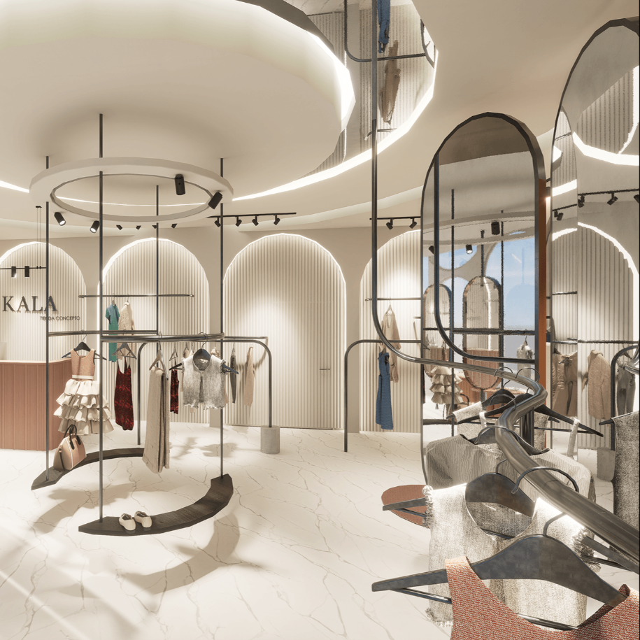 Estantes de ropa colgantes de metal Estantes de ropa de madera personalizados Pintura blanca Isla Doble