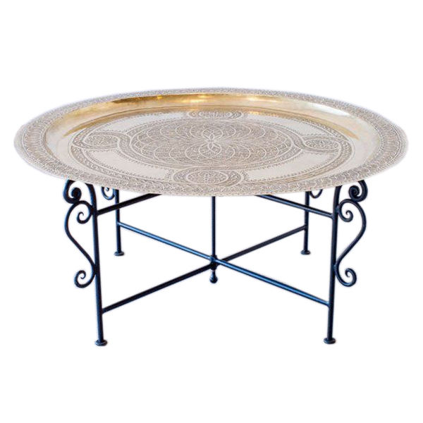 Mesa de Centro Decorativa con Base de Hierro Forjado Estilo Marroquí Clásico