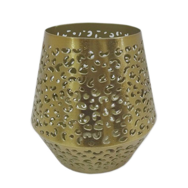 Portavelas de decoración del hogar con diseño perforado de hierro y metal, portavelas de lujo, soporte votivo de corona en forma de corona