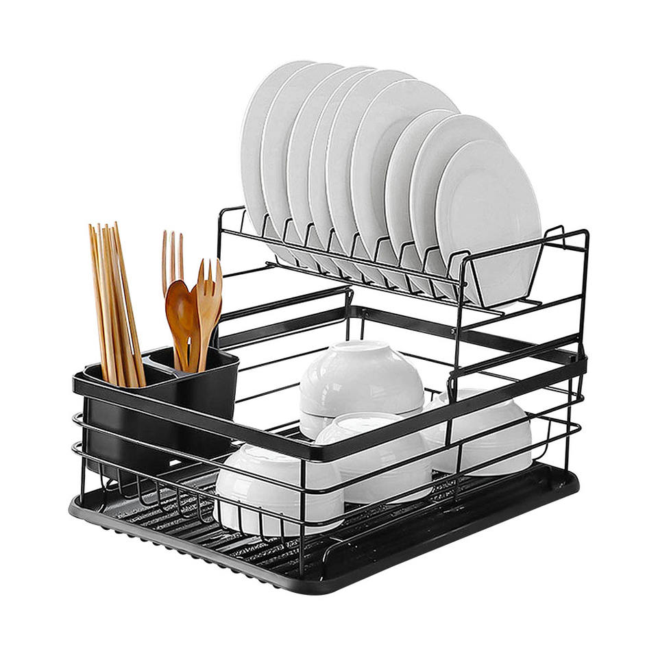 2 Tier Black Dish Rack With Draining Tray