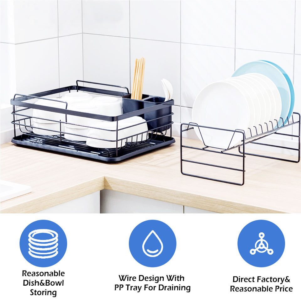 Organizador de cocina de metal, estante de lavado de platos, palillos, cuencos y estantes para platos, almacenamiento al por mayor con estante para platos de 2 niveles y bandeja de PP