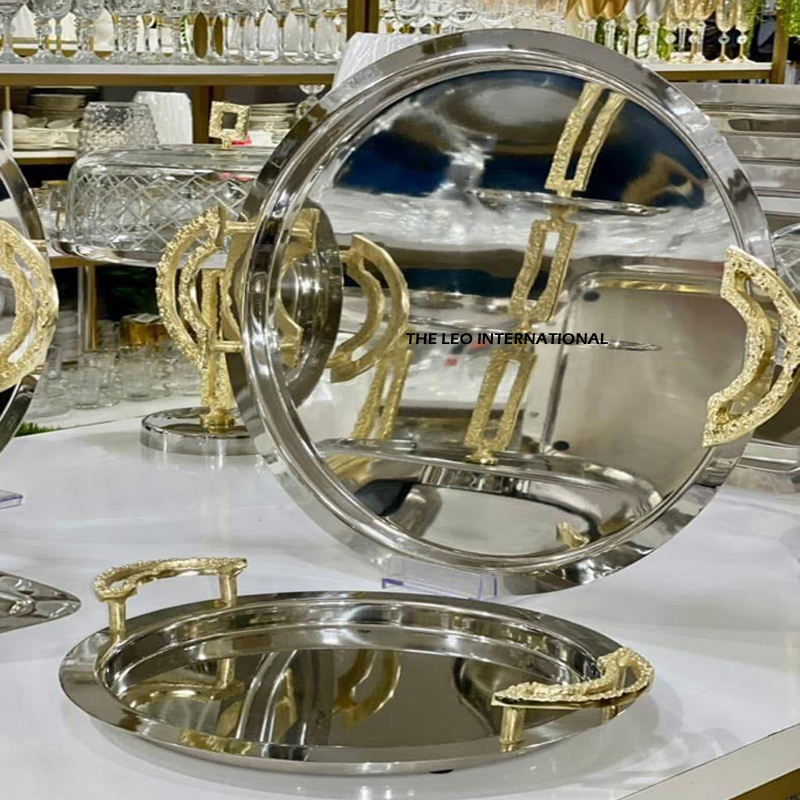 Bandeja para servir magdalenas redondeada grande de Metal, bandeja para servir creativa de alta calidad chapada en plata brillante con mango atractivo
