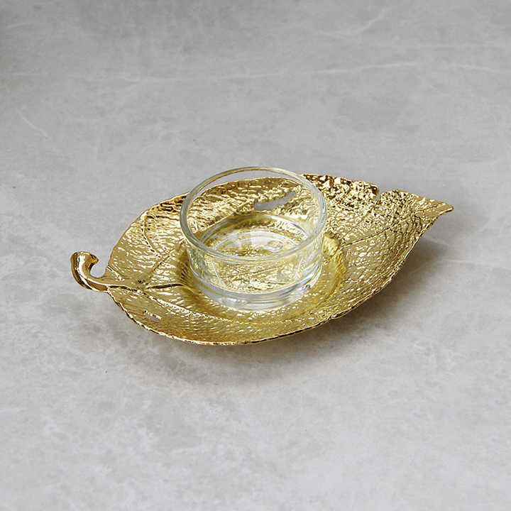 Portavelas con diseño de hoja de Metal con acabado chapado a la moda para el hogar Villa cena boda o Navidad