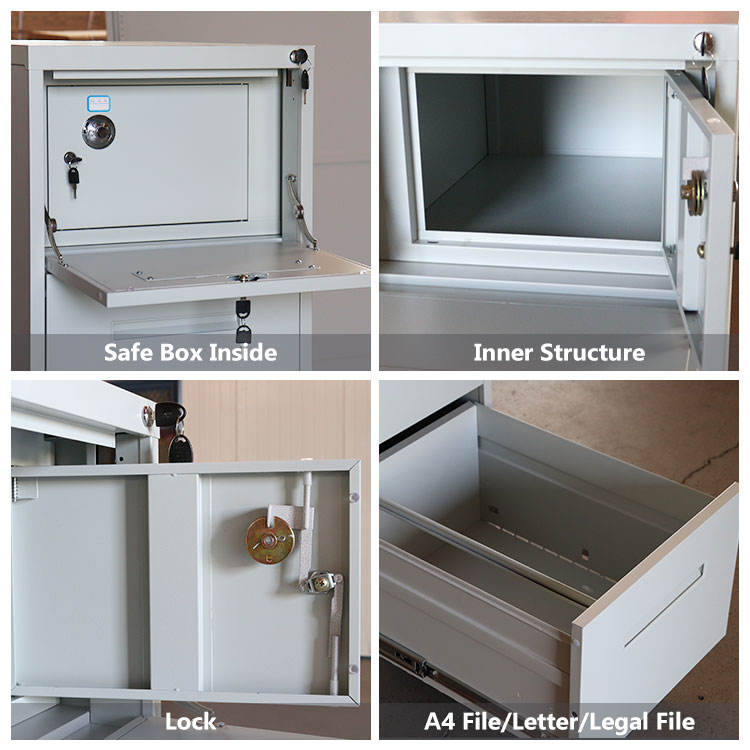 Gabinete de archivo de acero de 4 cajones con cerradura de metal con bóveda segura