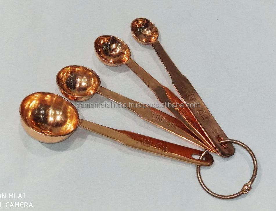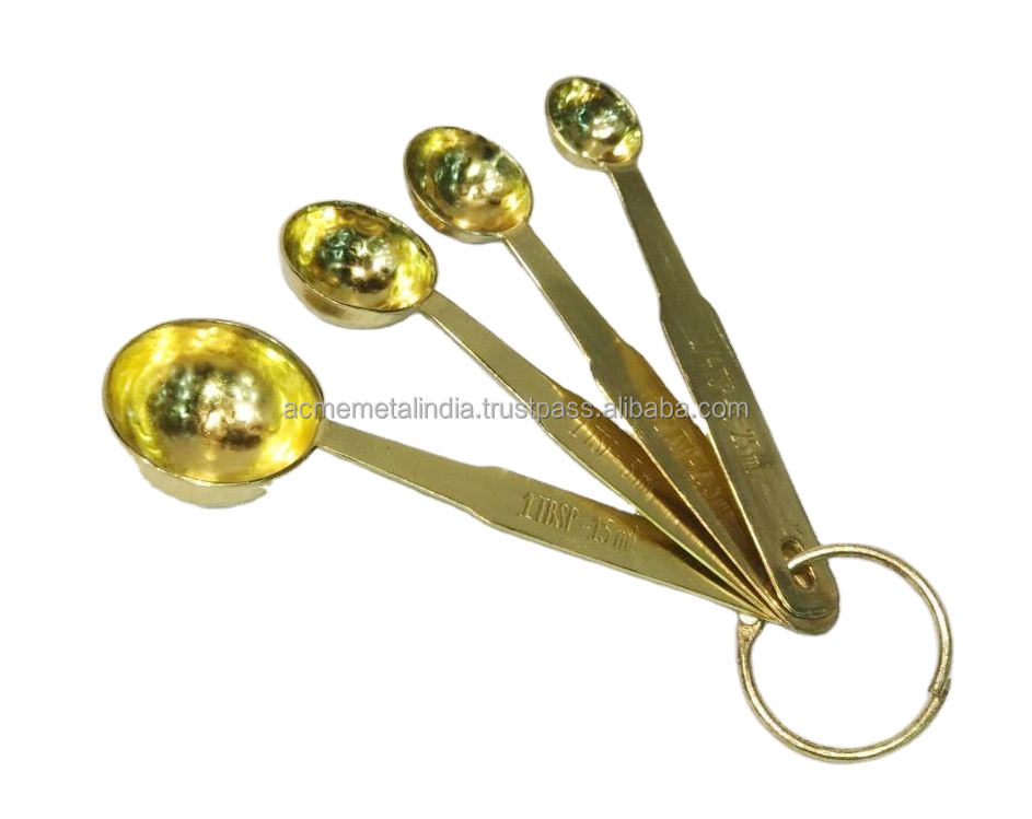 Cucharas medidoras de metal con acabado Chapado en color dorado y diseño grabado perfecto para medir y usar en la cocina elegante
