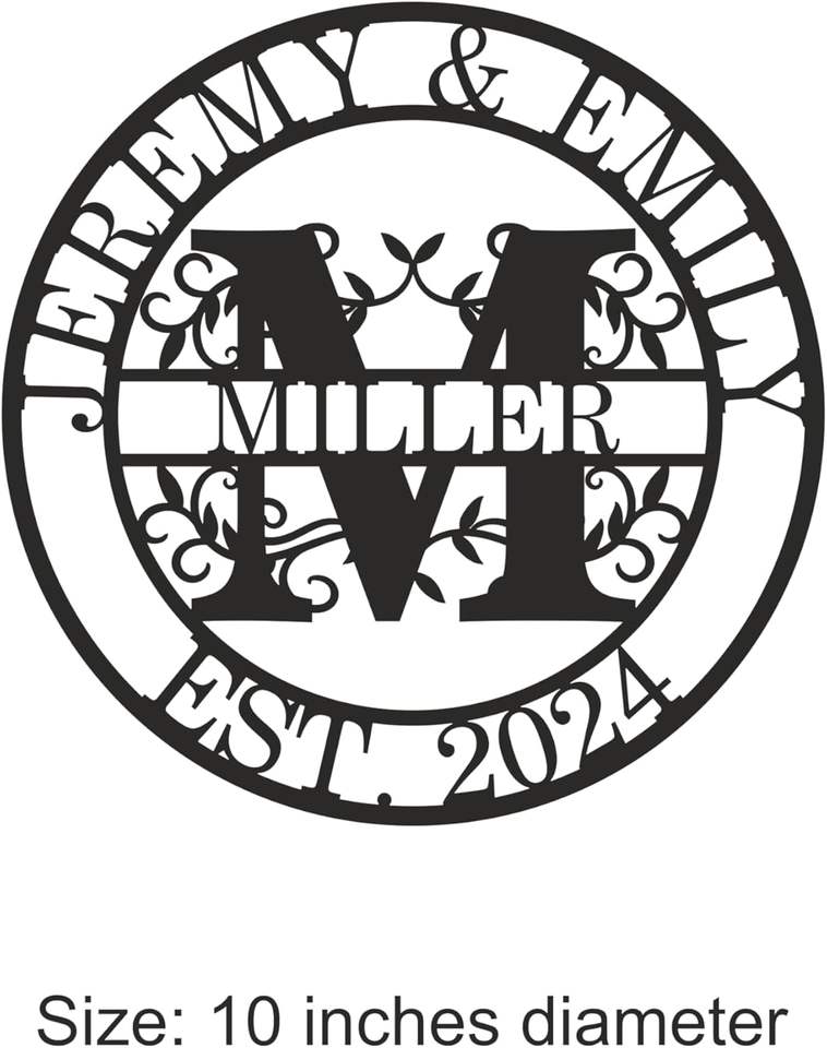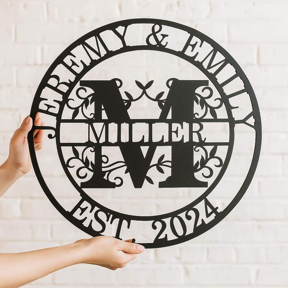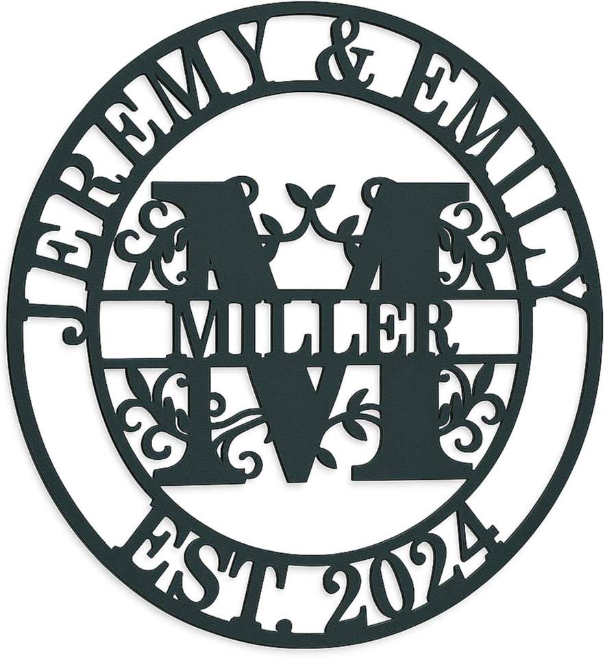 Letrero Metálico con Monograma Personalizado, Arte de Pared con Nombre de Familia, Letrero para Puerta Exterior, Regalo de Aniversario de Bodas, Decoración Metálica