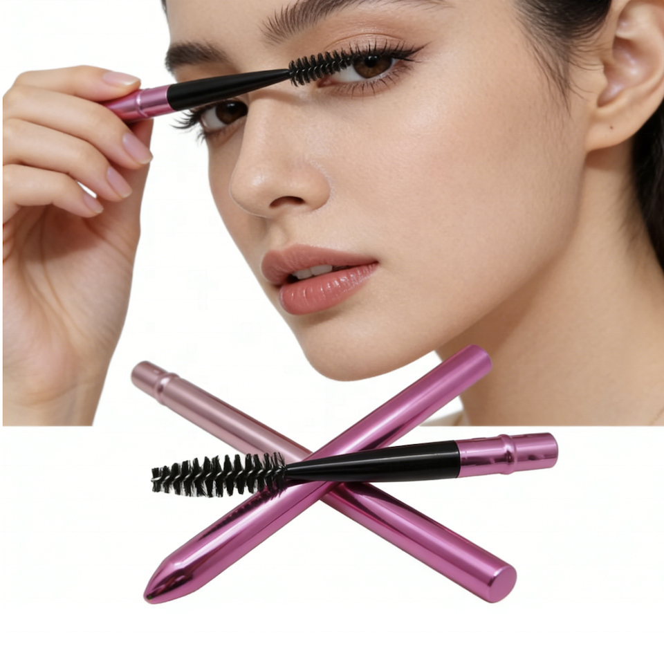 Cepillos Retráctiles de Metal para Extensión de Pestañas con Tubo Protector, Aplicador de Maquillaje, Varita para Rímel, Cepillo para Pestañas con Tapa