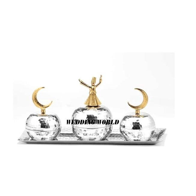 Frasco redondo de metal Cady de excelente calidad, diseñador hecho a mano, servidor de nueces, tarro de fruta seca de metal de lujo con estilo clásico