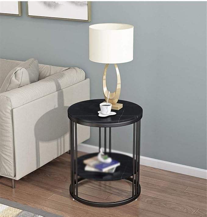 Mesa de centro redonda de metal con estante adicional para sala de estar y dormitorio, mesa auxiliar para espacios pequeños, tapa de madera y marco de metal