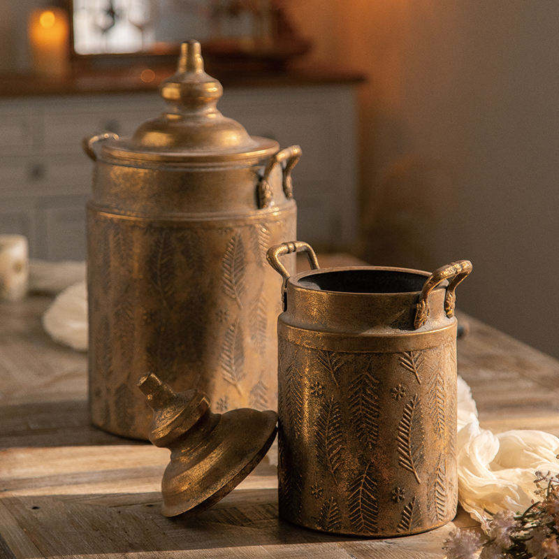 Jarrón Floral Rústico de Metal, Jarra Decorativa para Mesa de Hogar, Estilo Vintage, Exhibición de Arreglos Botánicos, Centro de Mesa Artesanal