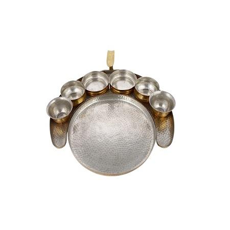 Juego Thali de Metal plateado y dorado para servir alimentos, accesorios de cocina, vajilla de calidad de lujo, juego Thali a baja velocidad