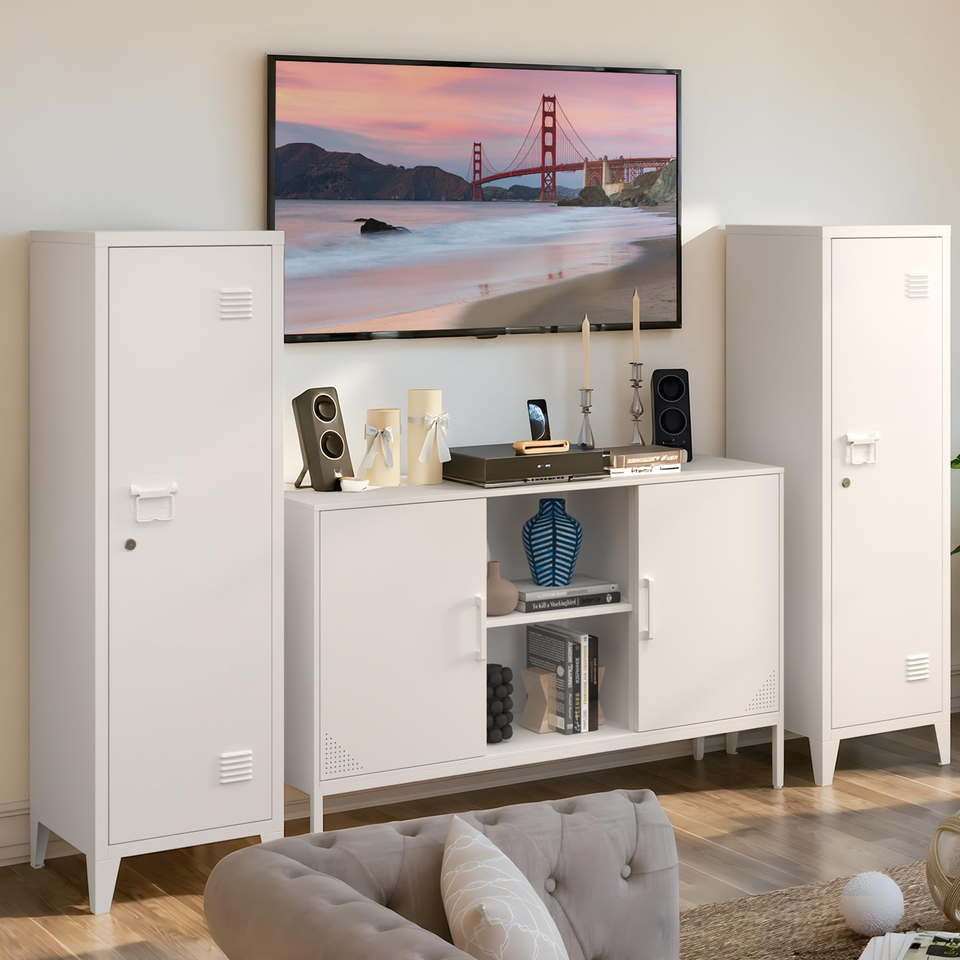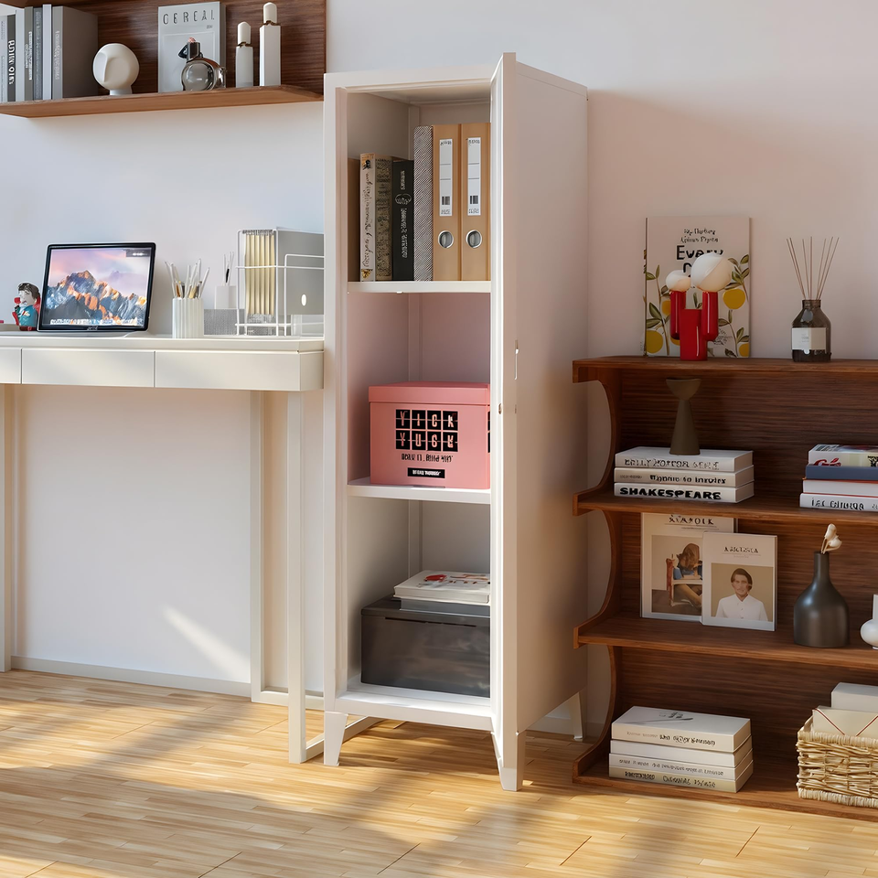 Armario de Almacenamiento Metálico con Cerradura, Puerta y Estantes Extraíbles, Armario Estrecho para Cocina o Baño
