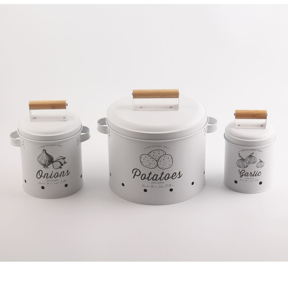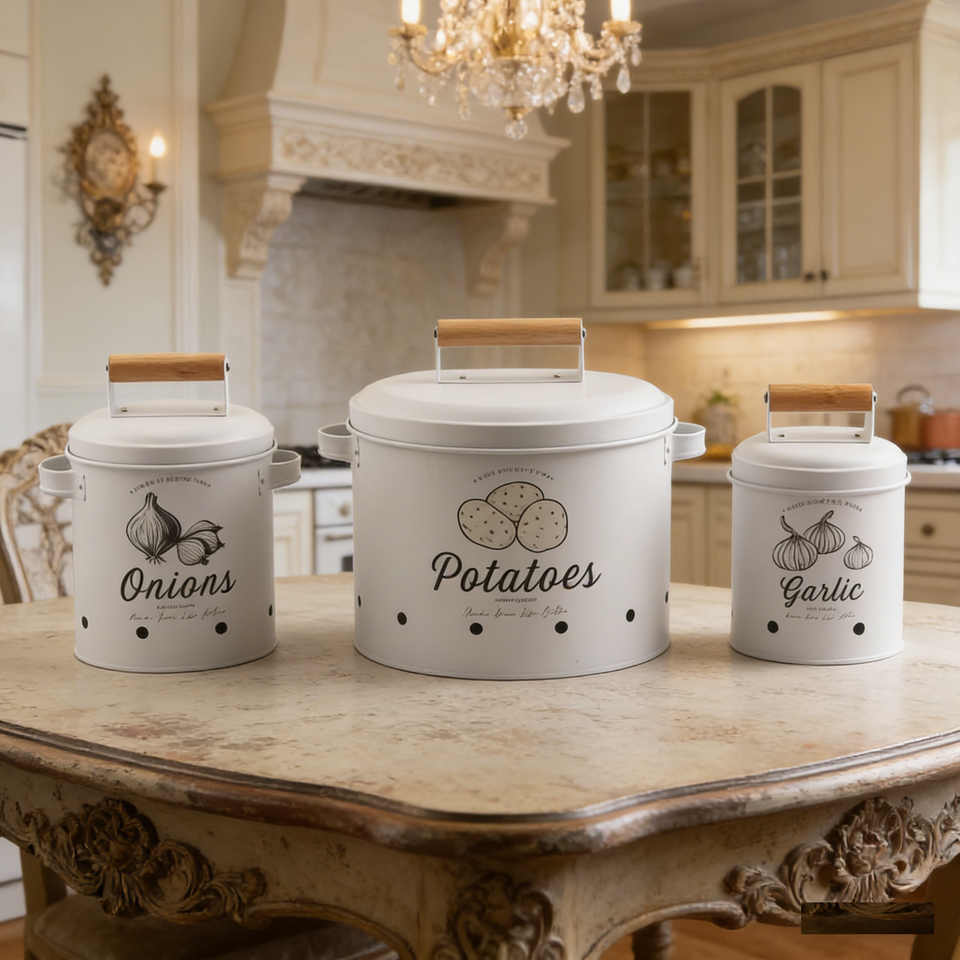 Contenedor Metálico para Almacenamiento con 3 Recipientes para Cebolla, Ajo y Patata