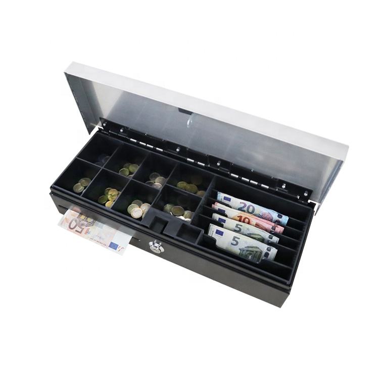 Cajón de efectivo estándar portátil para caja de dinero de supermercado, con tapa abatible de almacenamiento de metal, 8 billetes ajustables/8 monedas