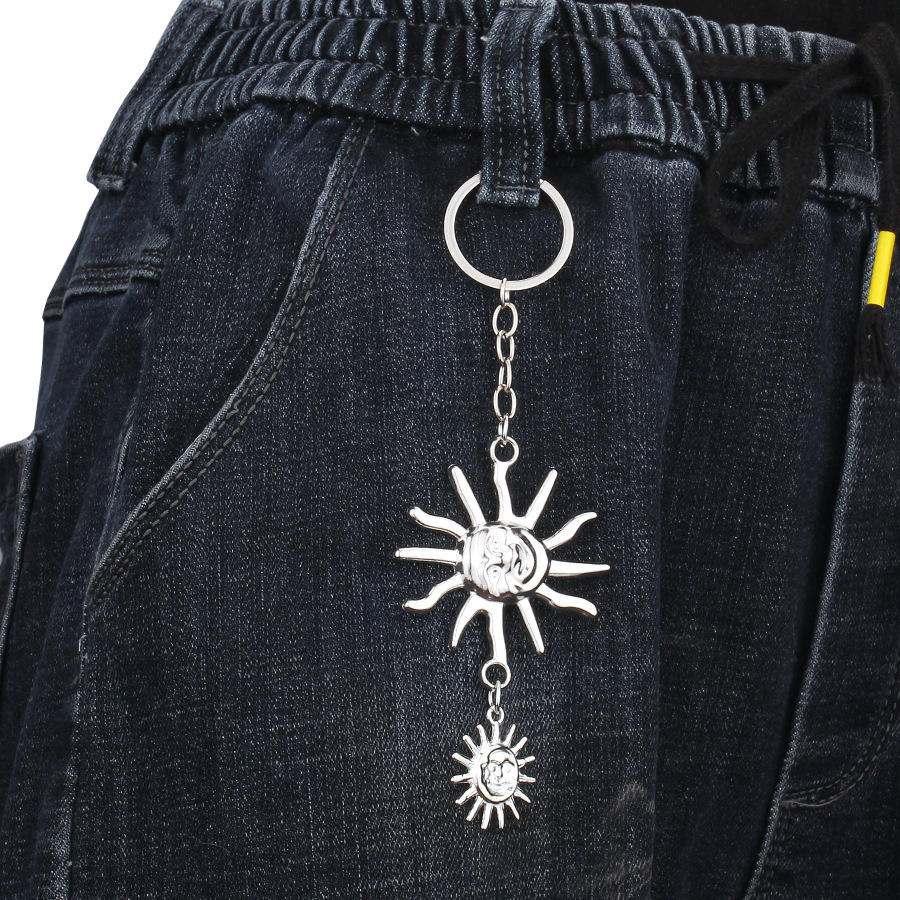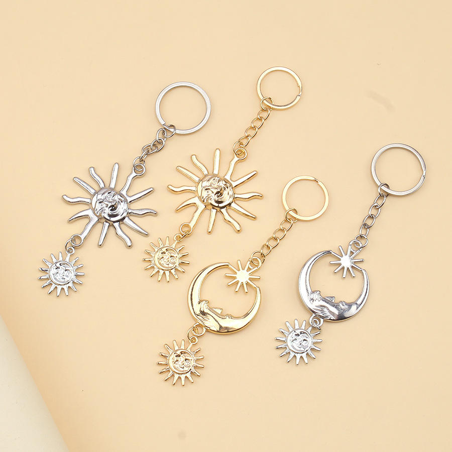 Llavero con colgante de sol y luna de metal, aleación de zinc, accesorio decorativo de moda, regalo personal