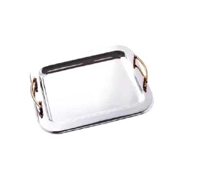 Bandeja de metal con acabado plateado Forma rectangular Diseño elegante Buena calidad Manija de dos lados para servir en hotel y restaurante