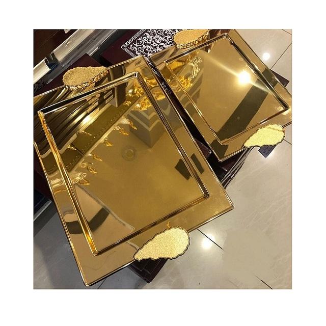 Bandeja de Servicio de Metal Blanca y Dorada con la Mejor Calidad, Bandeja de Servicio de Restaurante para Frutas, Aperitivos y Alimentos en Venta