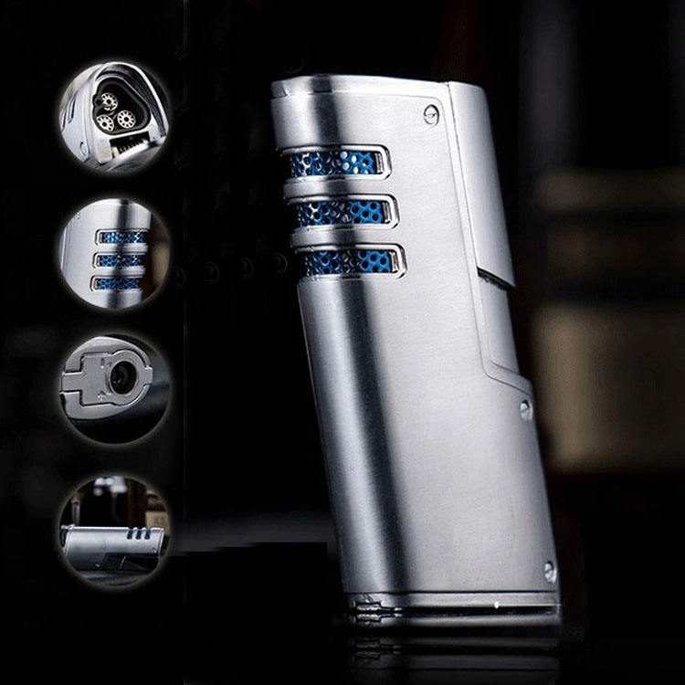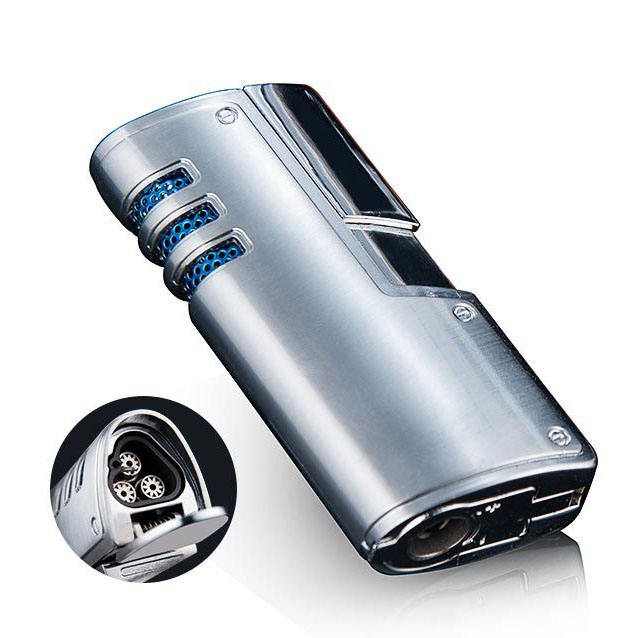 Nombre:Encendedor promocional electrónico recargable a prueba de viento del cigarro del metal triple